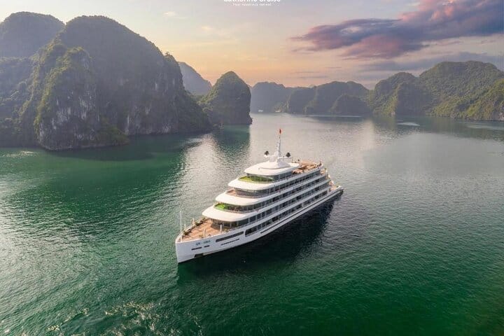 Indulge in the ultimate luxury escape aboard the 6-Star Cruise – 2 Days 1 Night Halong Bay Tour, thoughtfully curated for discerning travelers who value refined comfort and impeccable service. Sail through the breathtaking seascapes of UNESCO-listed Halong Bay while staying in elegantly designed suites and savoring gourmet fusion cuisine that harmoniously blends Vietnamese and Western flavors. Elevate your journey with exclusive experiences such as sunset canapés at the Sky Bar, soothing spa treatments, exciting squid fishing, and lively onboard entertainment. Whether you seek pure relaxation, romantic moments, or cultural enrichment, the 6-Star Cruise promises a truly unforgettable Halong Bay experience defined by timeless elegance and excellence.