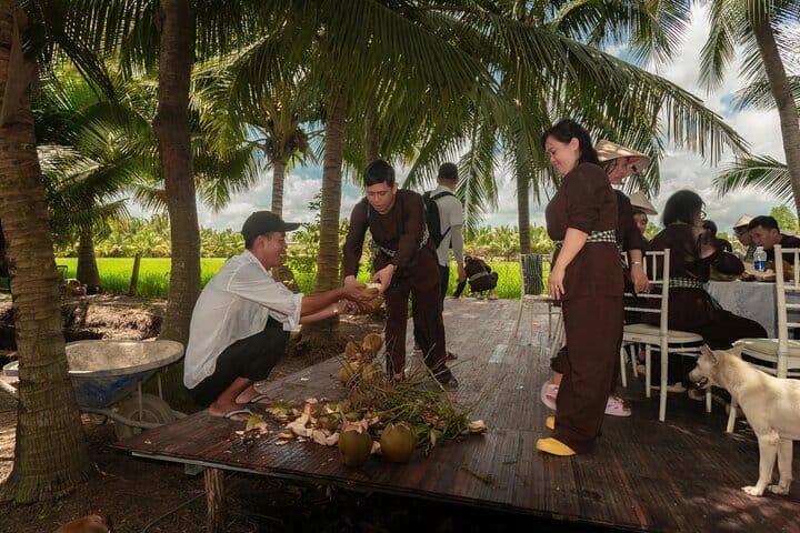 Step into the daily rhythm of the Mekong Delta and experience how rivers sustain life in Vietnam’s countryside. This full-day eco tour brings you close to the land and its people — from vibrant village markets to peaceful canals and lush coconut gardens.