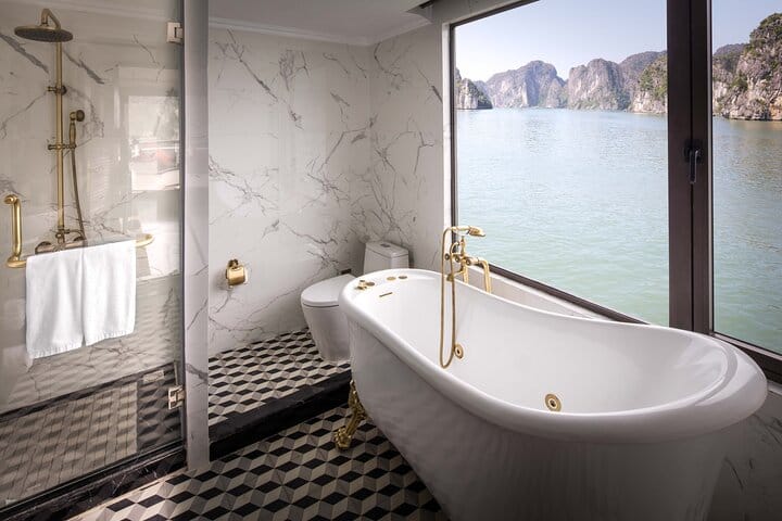 Embark on an extraordinary 2-day adventure with Boss Cruise, the largest cruise in Halong Bay. Spend 1 night onboard and immerse yourself in the breathtaking beauty of this UNESCO World Heritage site. Discover the hidden gems of Halong Bay, including a visit to the awe-inspiring Surprise Cave (Hang Sửng Sốt). Indulge in delicious meals, join fun activities, and relax on the sundeck while surrounded by stunning landscapes. This unforgettable journey promises to be a perfect blend of relaxation and exploration, creating memories that will last a lifetime. Join us for an experience like no other with Boss Cruise!