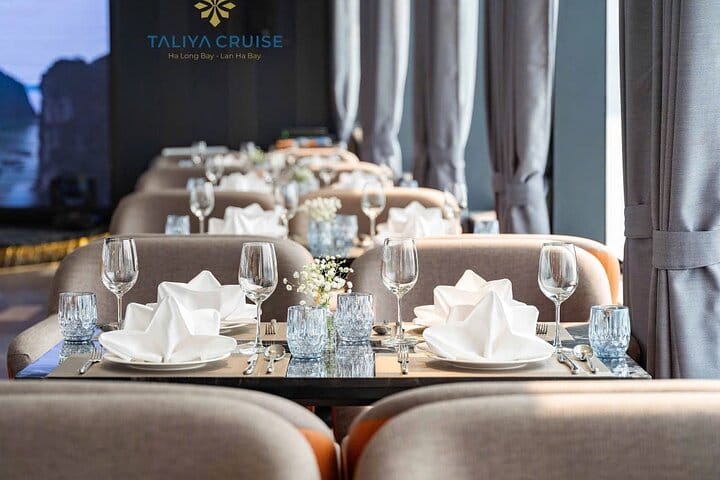 Set out from Hanoi on the Taliya 1-Day Luxury Cruise and enjoy 7.5 unforgettable hours exploring the breathtaking landscapes of Ha Long and Lan Ha Bays. Indulge in a delicious buffet lunch as you glide past emerald waters and dramatic limestone islets. Venture into the mystical Dark and Bright Cave by bamboo boat, kayak through Lan Ha’s hidden lagoons, and cool off with a refreshing swim in serene surroundings. Take part in a hands-on cooking class to master Vietnamese spring rolls, then unwind with a lively sunset party on the sundeck. With hotel pickup in Hanoi, a swift expressway transfer to Tuan Chau Marina, and a smooth return journey, this all-inclusive cruise promises comfort, adventure, and world-class service from start to finish.