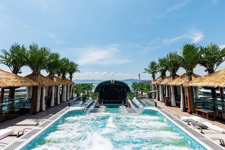 Step aboard the Dolphin Halong Day Cruise for an exceptional 5-star experience that redefines luxury on the bay. This top-rated day voyage features a private swimming pool, a lively party atmosphere, and an indulgent buffet lunch to elevate your journey. Cruise past Ha Long Bay’s iconic limestone karsts while soaking up the sunshine, taking a refreshing swim, and enjoying vibrant onboard entertainment. Perfect for travelers looking for a premium day cruise that effortlessly combines breathtaking scenery, relaxation, and upbeat energy.