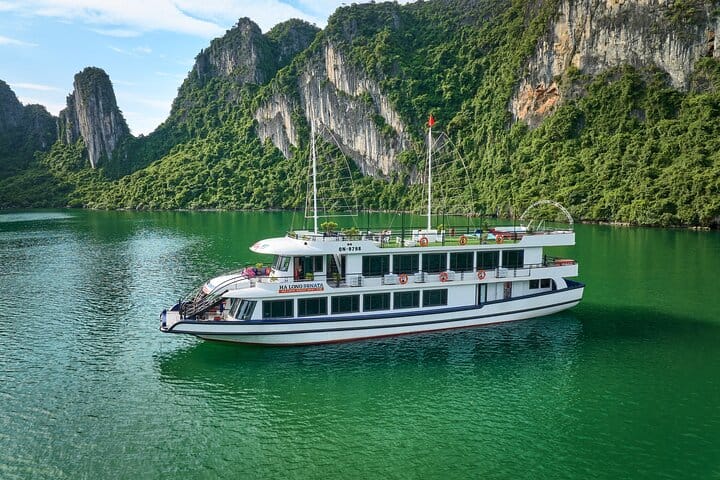 Embark on a luxurious Halong Bay day trip aboard a 5-star cruise, complete with a seamless expressway transfer from Hanoi for maximum comfort. Glide across emerald waters surrounded by dramatic limestone karsts in this UNESCO World Heritage Site. Indulge in a lavish buffet lunch featuring fresh seafood and regional specialties, relax in the outdoor jacuzzi, or explore serene lagoons by kayak. With state-of-the-art facilities, exceptional service, and awe-inspiring scenery, this all-inclusive journey perfectly combines relaxation, adventure, and discovery—all in one unforgettable day.
