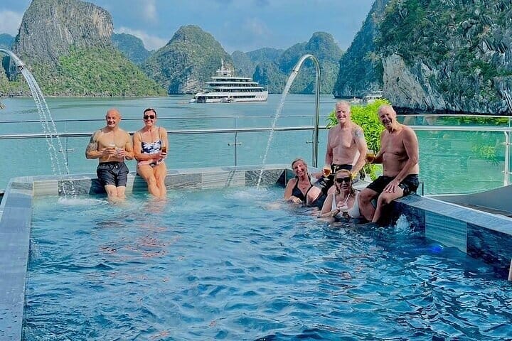 Set off on a 7.5-hour luxury adventure aboard the Taliya 1-Day Premium Cruise, gliding through the world-famous Halong Bay and the serene Lan Ha Bay. Savor a delicious buffet lunch as you pass towering limestone karsts and emerald waters. Explore the mystical Dark and Bright Cave by bamboo boat, paddle through hidden lagoons on a kayak, and take a refreshing swim in the bay’s tranquil waters. Onboard, join a hands-on Vietnamese cooking class to craft fresh spring rolls, then unwind with a lively sunset party on the expansive sundeck. Blending natural wonders, cultural experiences, and refined comfort, this full-day cruise is the perfect way to discover Halong Bay in style.