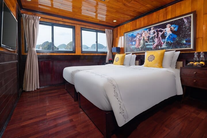 Set sail on a 2-day, 1-night adventure aboard the 4-star Hera Classic Boutique Cruise, and uncover the timeless beauty of Ha Long Bay. Stay in elegant cabins with panoramic bay views, indulge in authentic Vietnamese cuisine, and visit iconic sites such as Sung Sot Cave and Titop Island. Glide across emerald waters by kayak, soak up the scenery from the sundeck, and enjoy warm hospitality in a refined boutique setting. The Hera Classic Boutique Cruise combines comfort, culture, and charm for an unforgettable Halong Bay experience.