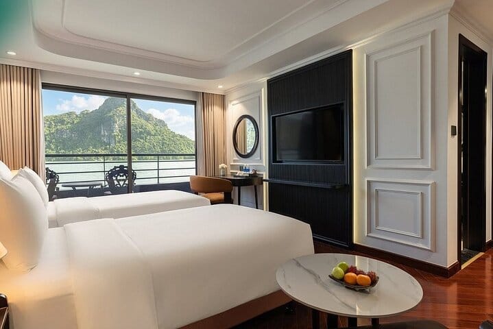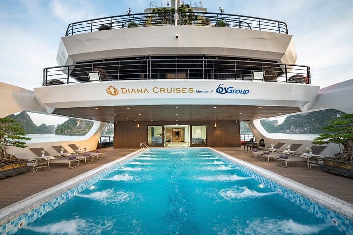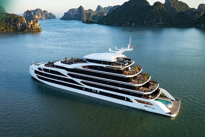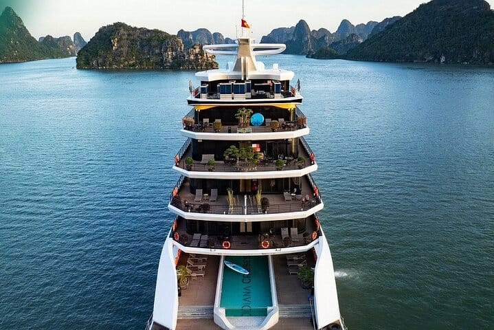 Depart from Hanoi for an elegant 2-day, 1-night journey aboard the Diana Luxury Cruise, exploring the unspoiled beauty of Lan Ha Bay. Designed as one of the largest and most luxurious cruises in the region, Diana offers spacious cabins with private balconies, refined interiors, and panoramic sea views. Cruise through tranquil waters surrounded by limestone islands, enjoy gourmet dining, and unwind on the expansive sundeck. Activities include kayaking, swimming, cave visits, and sunset relaxation. With attentive service and a well-curated itinerary, this cruise delivers a perfect blend of comfort, discovery, and relaxation in a serene bay setting.