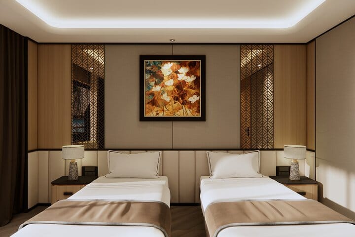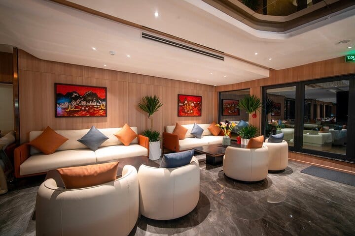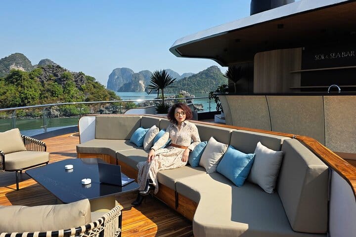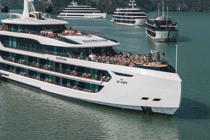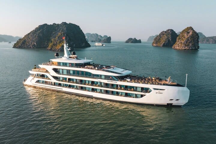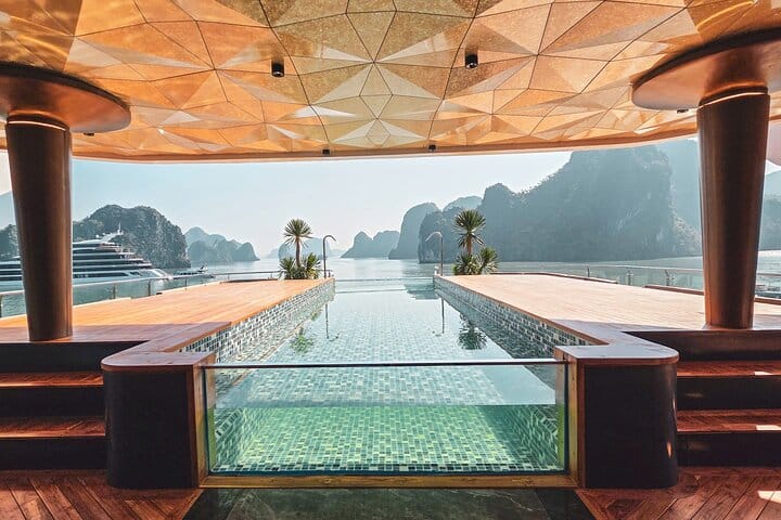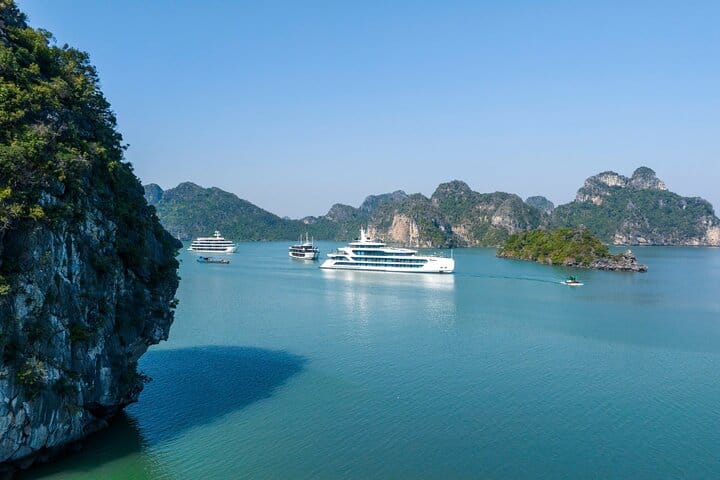 From Hanoi, indulge in an exceptional 2-day, 1-night 5-star luxury cruise through the iconic beauty of Ha Long Bay and Lan Ha Bay, complete with comfortable limousine transfers, elegant cabins, and premium onboard services. Sail past dramatic limestone formations and serene emerald waters, kayak into hidden caves, and swim at secluded beaches away from the crowds. Delight in refined Vietnamese and international cuisine, join a sunset party, hands-on cooking class, and peaceful Tai Chi session on the sundeck. With attentive hospitality and a thoughtfully curated itinerary, this luxury overnight cruise offers the perfect balance of exclusivity, relaxation, and unforgettable discovery.