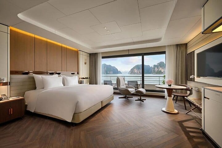 Embark on the ultimate luxury escape aboard the Grand Pioneers 6-Star Cruise, a 2-day, 1-night Halong Bay experience crafted for discerning travelers seeking sophistication and comfort. Sail through the breathtaking UNESCO World Heritage Site of Halong Bay while relaxing in exquisitely designed suites and indulging in gourmet fusion cuisine that harmoniously blends Vietnamese and Western flavors. Delight in a host of exclusive experiences, from sunset canapés at the Sky Bar and invigorating spa treatments to night squid fishing and vibrant onboard entertainment. Whether you seek relaxation, romance, or cultural discovery, the Grand Pioneers 6-Star Luxury Cruise promises an unforgettable journey through Halong Bay—where world-class service meets timeless elegance.