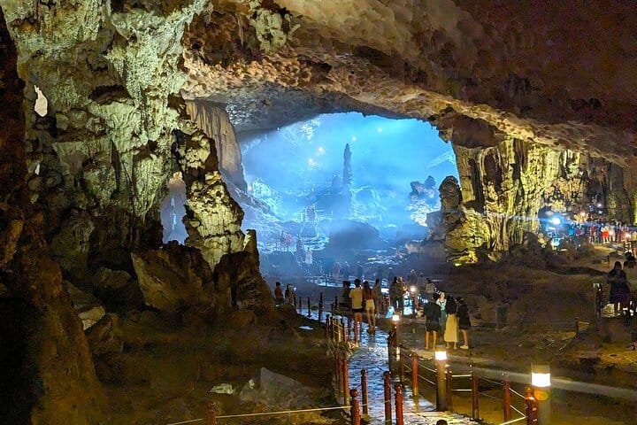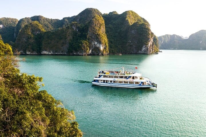 Leave the bustle of Hanoi behind and set out on a scenic escape to the natural splendor of Ha Long Bay. Begin your adventure at Ha Long Wharf before venturing into the magnificent Sung Sot (Surprise) Cave, where glistening stalactites and dramatic rock formations create an otherworldly landscape. Continue your journey to the peaceful Ti Top Island, where you can kayak through the serene Luon Cave, swim in the crystal-clear waters of the crescent-shaped Titov Beach, or hike to the island’s summit for sweeping panoramic views of the bay.