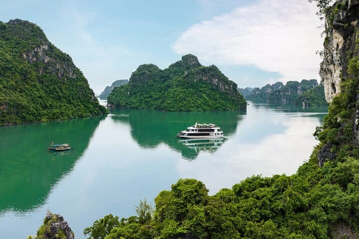 Embark on a luxurious day cruise through the breathtaking landscapes of Ha Long Bay aboard the 5-star Cruise. Sail past towering limestone karsts, hidden caves, and emerald waters as you unwind in comfort and style. Indulge in a gourmet lunch prepared by top chefs, enjoy kayaking or swimming in crystal-clear lagoons, and capture unforgettable photos of this UNESCO World Heritage Site. Experience the perfect blend of relaxation, adventure, and first-class service on this elegant Ha Long Bay escape.