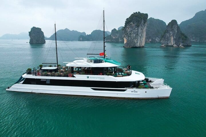 Set sail on the Halong Catamaran Premium Cruise and uncover the hidden beauty of Lan Ha Bay, the serene neighbor of Halong Bay. This modern luxury catamaran offers spacious decks, elegant interiors, and world-class service. Glide past towering limestone cliffs, kayak through tranquil lagoons, and swim in emerald waters. A gourmet lunch, attentive crew, and breathtaking scenery ensure an unforgettable day at sea.