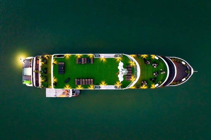Travel in comfort from Hanoi before boarding a premium cruise featuring spacious cabins, private balconies, panoramic sundecks, and attentive five-star service. Cruise through emerald waters dotted with dramatic limestone karsts, hidden lagoons, and quiet floating villages—far from the crowded routes of traditional Ha Long Bay.