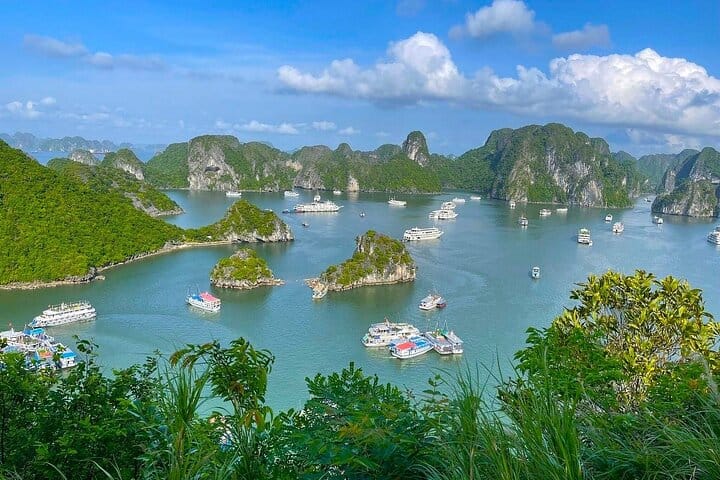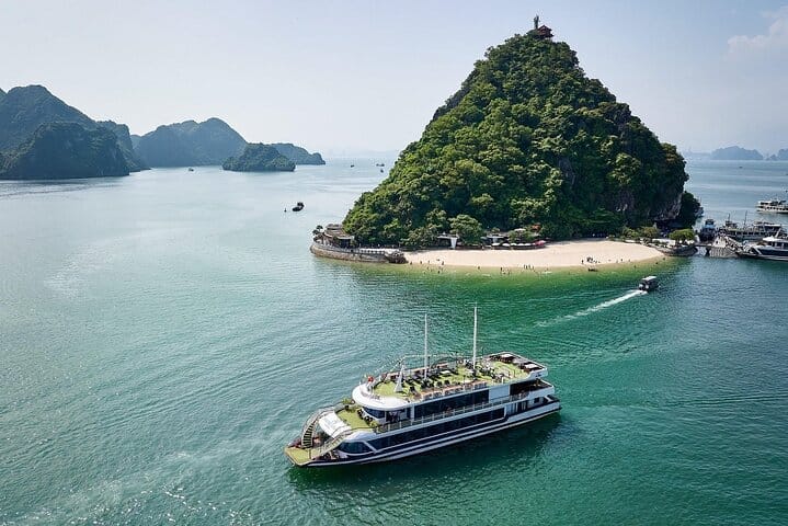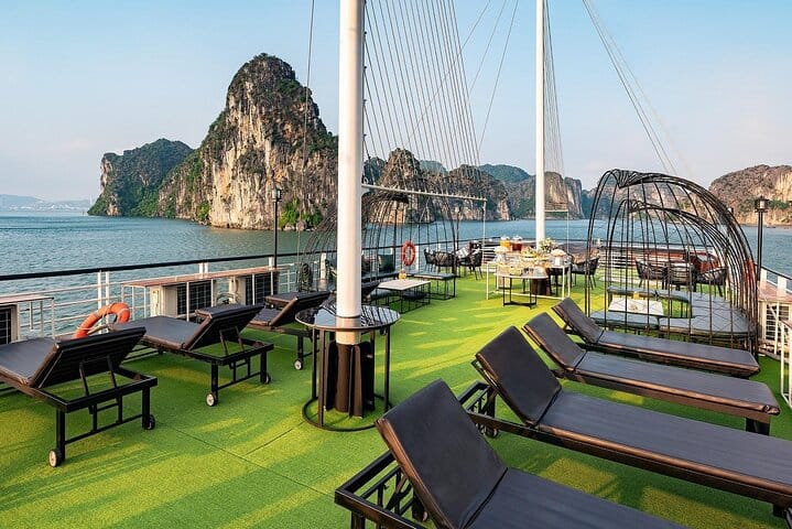 Depart from Hanoi in comfort aboard a premium limousine and enjoy an unforgettable luxury day cruise through the spectacular seascape of Ha Long Bay, a UNESCO World Heritage Site. Step onto a modern, elegantly designed cruise ship and savor panoramic views of towering limestone karsts rising from emerald waters. The journey includes guided visits to iconic caves, scenic islands, and time to relax on deck. Indulge in a lavish buffet lunch featuring fresh seafood and Vietnamese specialties while cruising through breathtaking scenery. With attentive service, refined amenities, and seamless transfers, this luxury day cruise offers the perfect blend of relaxation, discovery, and culinary delight.