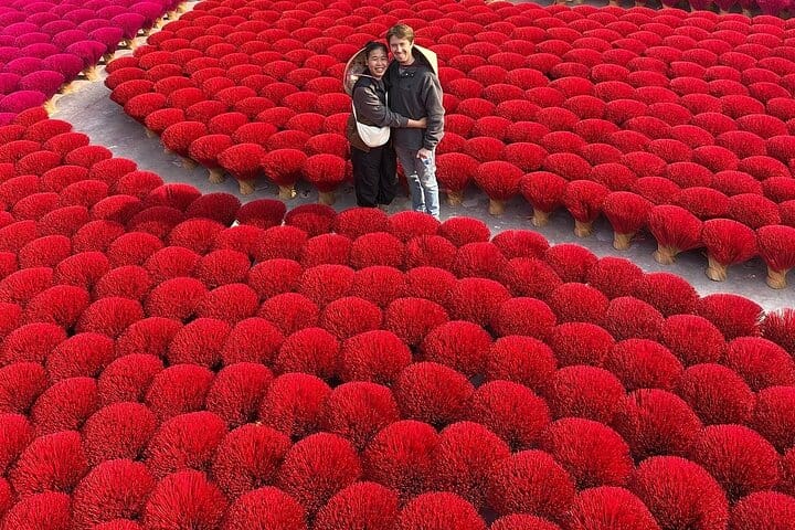 Discover three iconic destinations in one unforgettable full-day small-group journey: Quang Phu Cau Incense Village, Hoa Lu Ancient Capital, and the stunning landscapes of Tam Coc. Travel comfortably in a modern, air-conditioned vehicle with a maximum of nine guests for a more personal and relaxed experience. Capture vibrant photos at Quang Phu Cau, Vietnam’s most colorful craft village, famous for its striking incense displays. Step back in time at Hoa Lu, the ancient capital of Vietnam dating to the 10th century, and learn about its fascinating history. End your day with a serene sampan boat ride through Tam Coc—often called “Ha Long Bay on Land”—where limestone karsts tower over tranquil waterways and hidden caves.