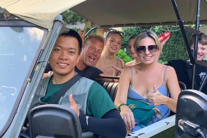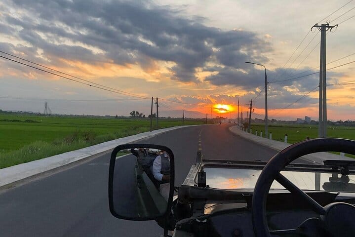 Embark on a memorable Hoi An Sunset Jeep Adventure and immerse yourself in the enchanting beauty of Vietnam’s countryside as the golden light bathes the landscape. Journey through lush rice paddies and along the serene Hoi An River, stopping at a local fish farm and a traditional herbal village to uncover the region’s authentic culture. Pause at a tranquil temple to soak in the peaceful atmosphere and rich heritage.