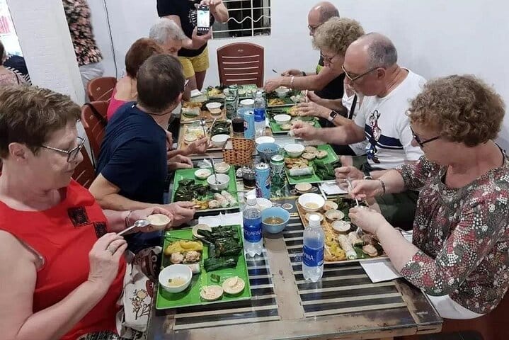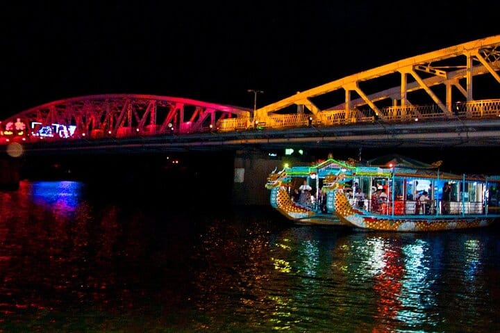 Experience the vibrant flavors and cultural charm of Hue on an unforgettable evening cyclo tour. Begin with a relaxing cyclo ride through the city’s lively streets, stopping along the way to savor a variety of delicious local street foods. As night falls, continue your journey aboard a boat on the iconic Perfume River, where the gentle melodies of traditional folk music create a truly enchanting atmosphere.