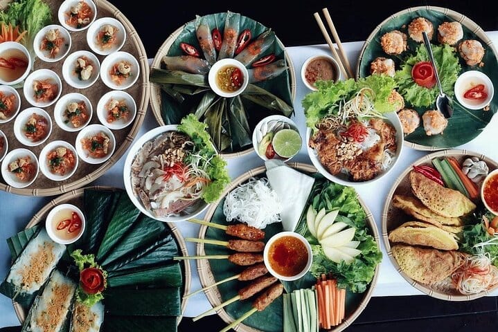 Hue Street Food Tour By Cyclo is a fascinating experience during the night time. Accompanied by our local guides, you are able to immerse yourself in Hue local cuisines with five must-to-try local restaurants including Hue royal cakes, Hue pancakes, Hue noodle soup with beef, Hue Grilled Pork With Lemongrass Skewers, and Hue sweet dessert.