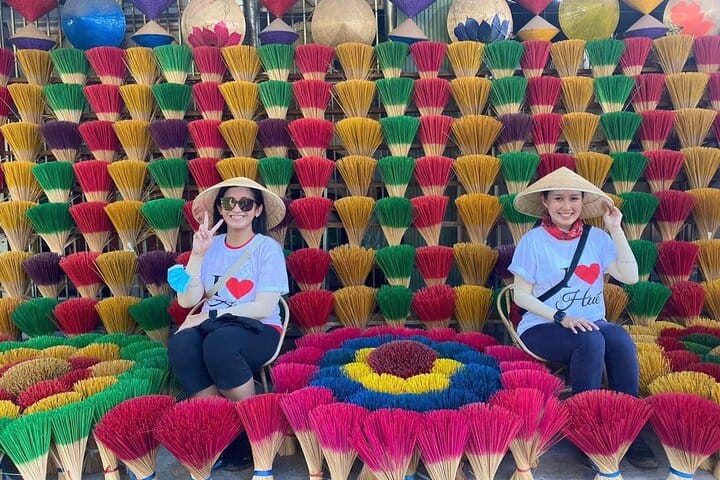 Hue City Tour and Local Food are designed to guide you to the five-must-visit destinations including Peaceful Bamboo Family, Khai Dinh Royal Tomb, Vong Canh Hills, Incense Village, and Tu Hieu pagoda. After sightseeing, your lady bikers will stop you at some food restaurants so that you can indulge yourself with the best taste of local food in Hue such as Local cakes ( Beo, Nam, Loc); Hue Noodle Soup, Hue Mini Pancake ( Banh Khot).