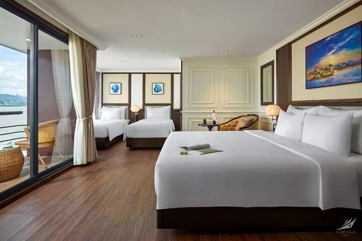 Sail into luxury with the Capella Halong Bay 2D1N Cruise, the finest way to explore Lan Ha Bay from Hanoi. Experience five-star comfort aboard a stylish modern vessel featuring spacious cabins, private balconies, and an infinity pool. Cruise through breathtaking limestone karsts, kayak in hidden lagoons, visit Viet Hai Village, and unwind on pristine beaches. Enjoy exquisite cuisine, sunset cocktails, and impeccable service—an unforgettable journey that blends adventure, elegance, and relaxation.